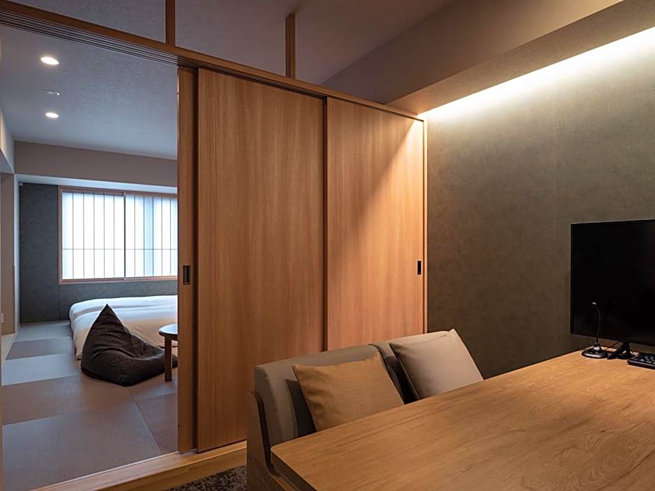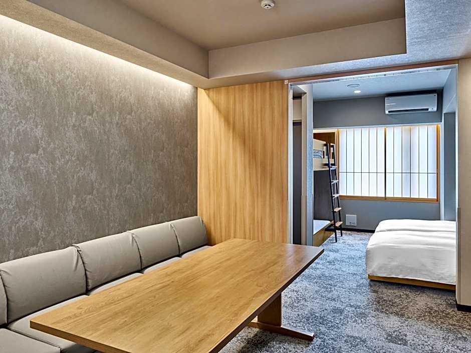 The quadruple room provides air conditioning, tatami, as well as a private bathroom featuring a bath and a shower. Meals can be prepared in the kitchen, which comes with a stovetop, a refrigerator, kitchenware and a microwave. The quadruple room features carpeted floors, a seating area with a flat-screen TV, a dining area, a wardrobe, as well as a safe deposit box. The unit offers 2 beds and 2 futons.